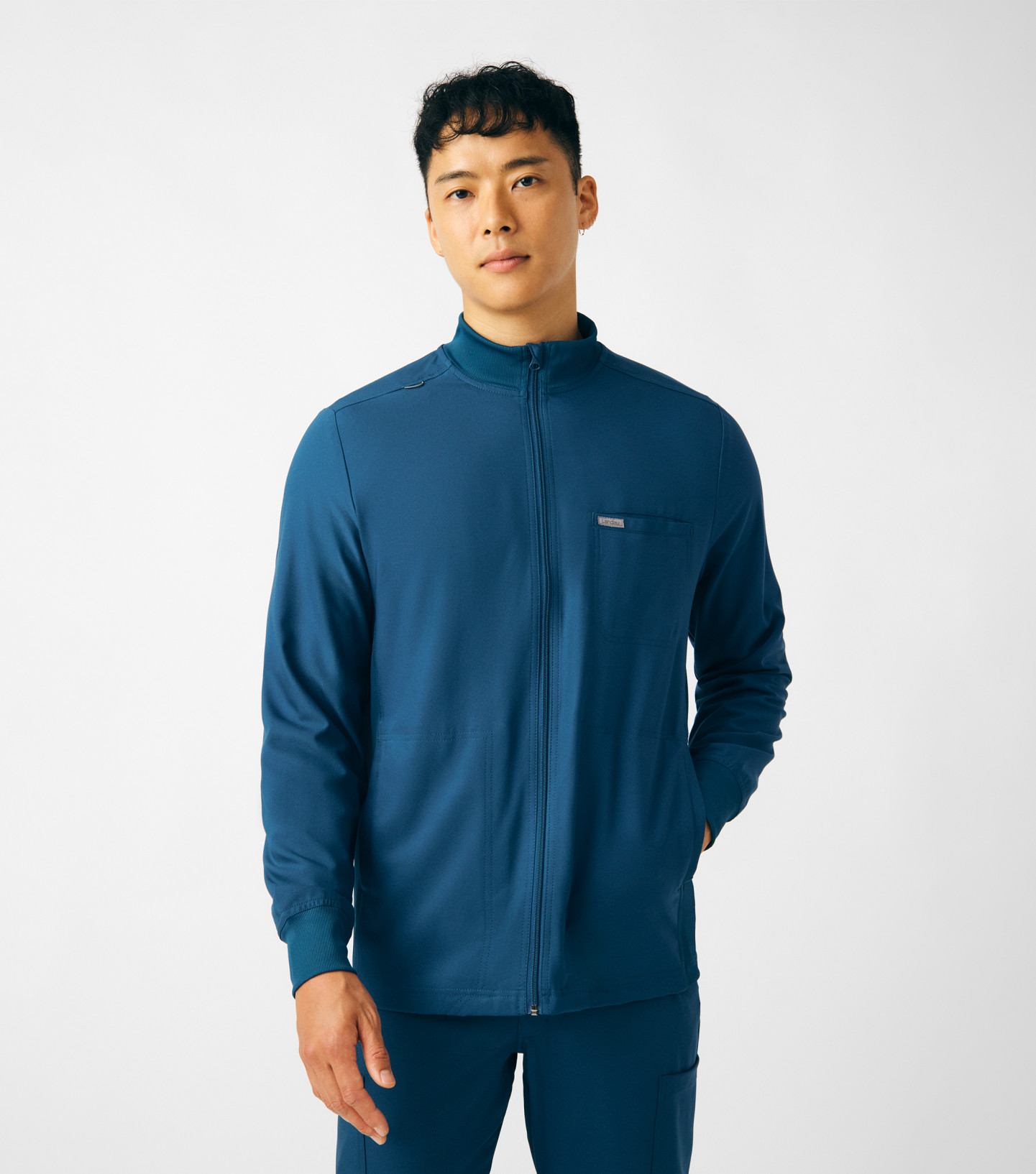 A Men's Fit zip front jacket that is not only comfortable, but will keep you warm all day. The rib knit mock neck collar, cuffs, and side panels offer a relaxed fit. Features ample amount of space for essential tools and accessories with 1 chest pocket, 2 large welt pockets, and an ID badge loop to keep your items organized. With all these features this jacket will become an essential item for your workday.