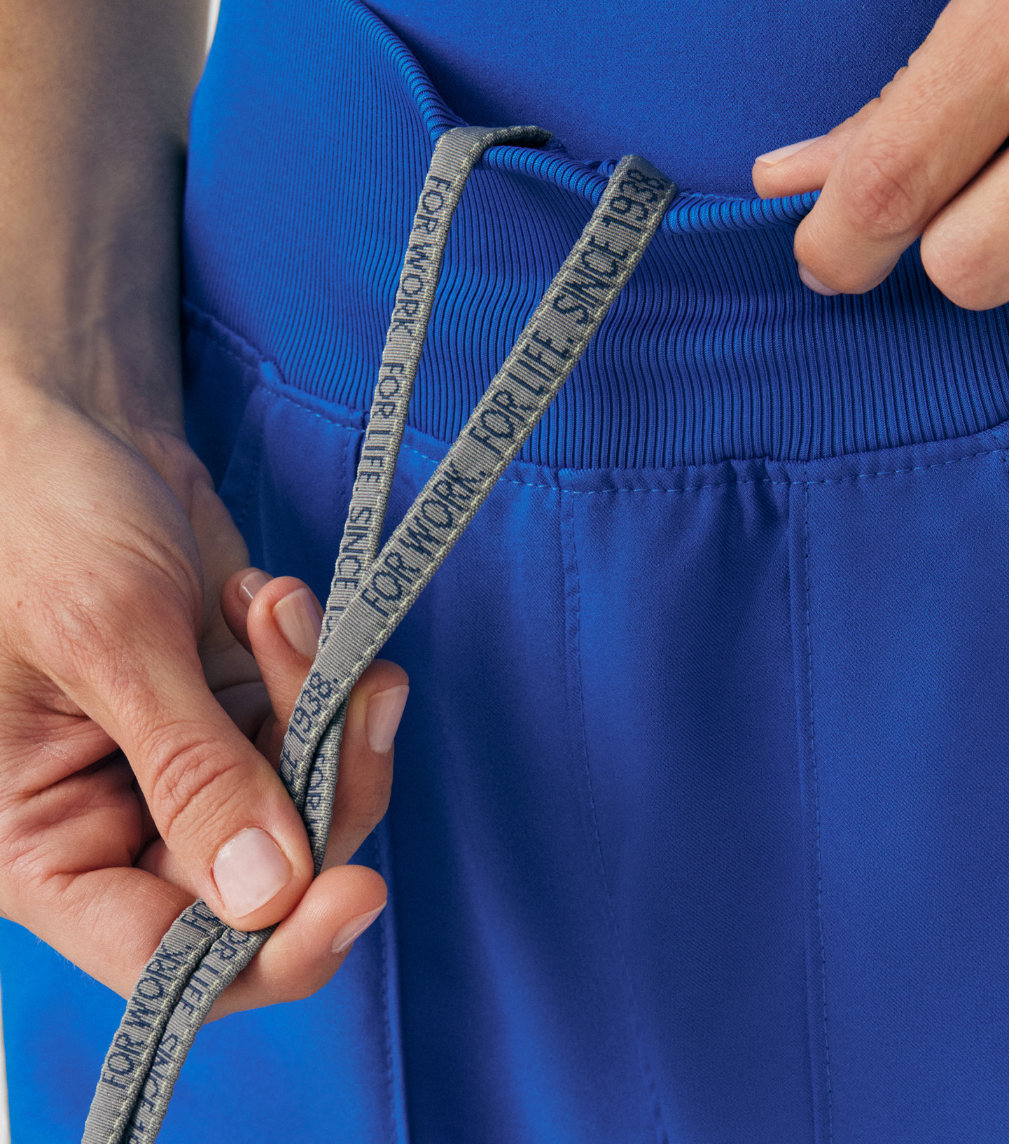 Mid-rise rib-knit elastic waist with an internal drawstring for a clean look with a secure fit